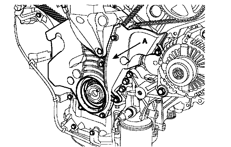 9. Remove the timing belt lower cover (A).