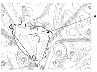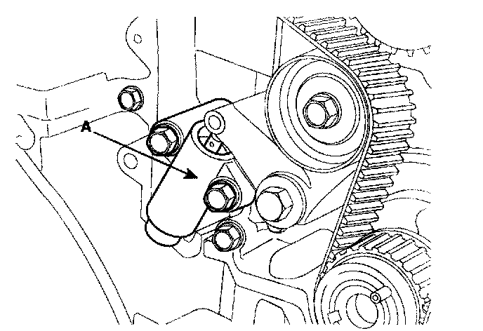 11. Remove the timing belt auto tensioner (A).