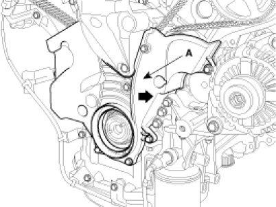 5. Remove the timing belt upper cover (A).
