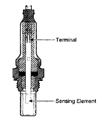Heated Oxygen Sensor (HO2S) consists of zirconium and alumina and is installed on upstream and downstream of the Manifold Catalyst Converter (MCC). After it compares oxygen consistency of the atmosphere with the exhaust gas, it transfers the oxygen consistency of the exhaust gas to the PCM. When AIF ratio is rich or lean, it generates approximately 1 V or 0 V respectively. In order that this sensor normally operates, the temperature of the sensor tip is higher than 370 degrees C (698 degrees F). So it has a heater which is controlled by the PCM duty signal. When the exhaust gas temperature is lower than the specified value, the heater warms the sensor tip.