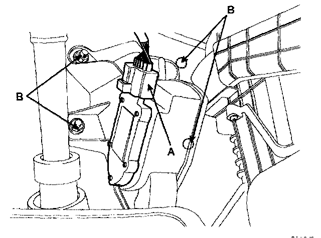 3. Unfasten the four mounting nuts (B) and remove the accelerator pedal from the vehicle.