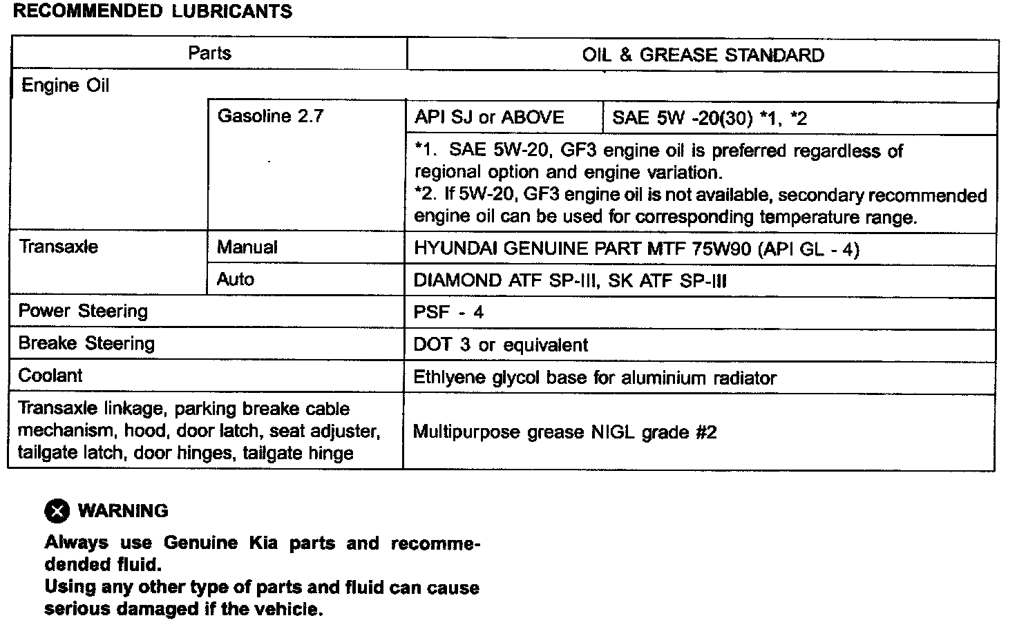 Fluid Type Specifications