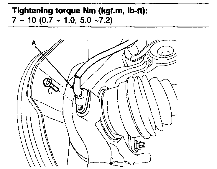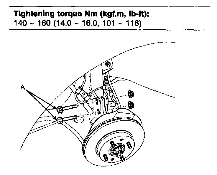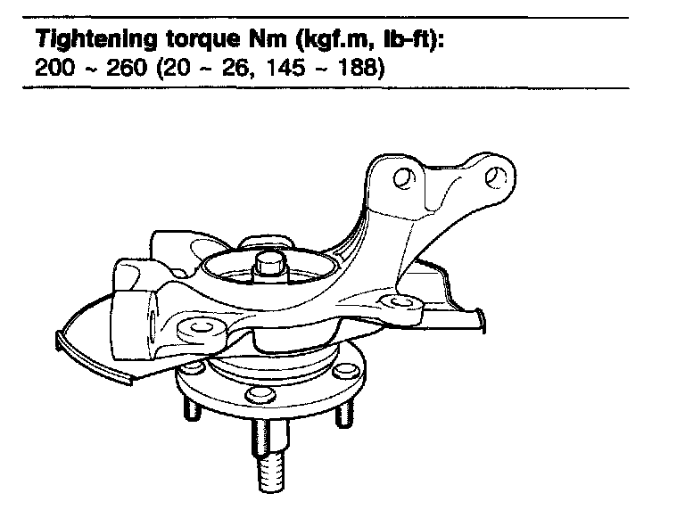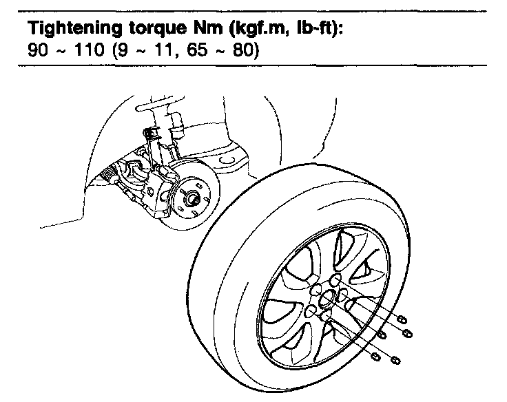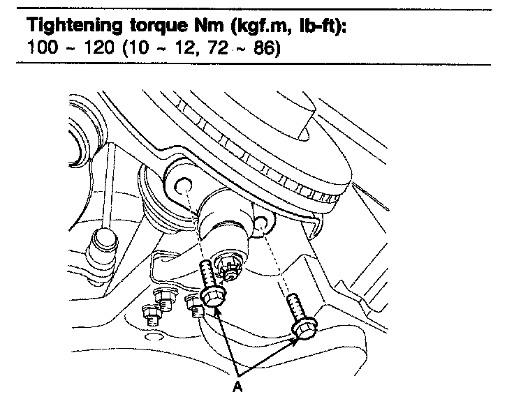 Tightening torque Nm (kgf.m, ft. lbs.): 24 - 34 (2.4 - 3.4, 17 - 25)