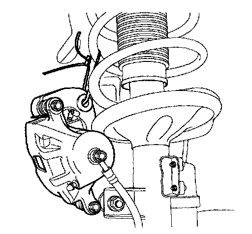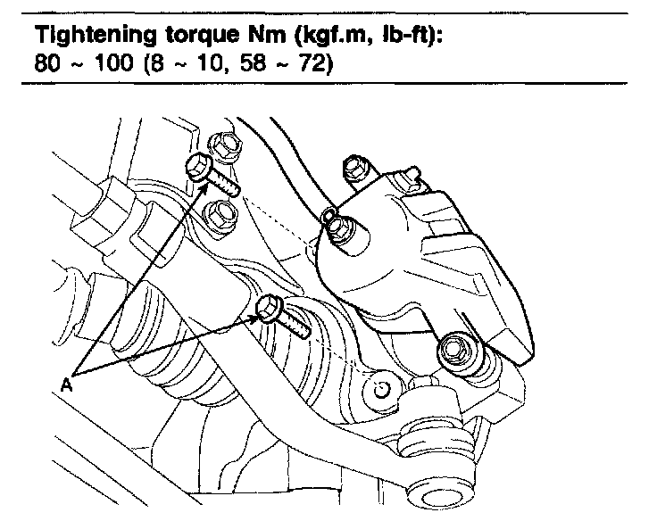 3. Remove the caliper assembly by loosening the bolts (A), and then suspend it with wire.