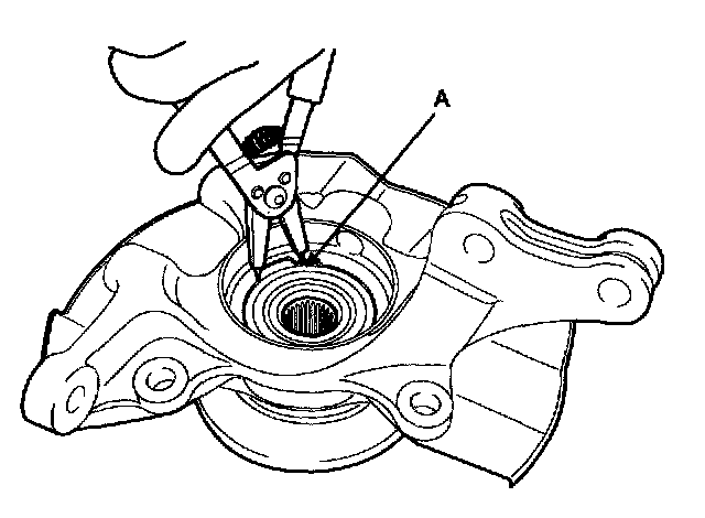 2. Remove the wheel speed sensor (A) from the knuckle.