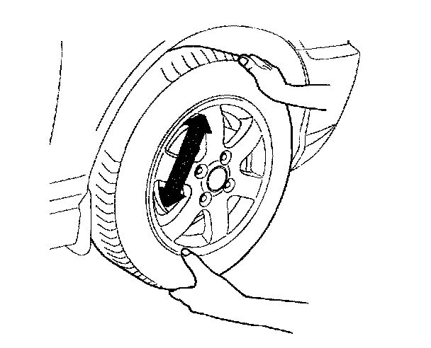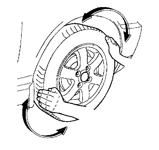 2. Grip each front tire at the top and bottom and move the wheel inward and outward while lifting the weight of the tire off the front wheel bearings.