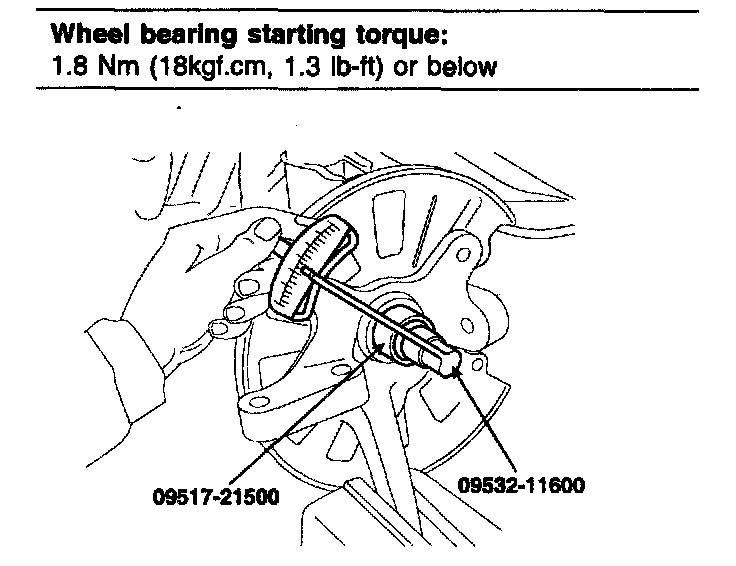 7. Measure the wheel bearing starting torque.