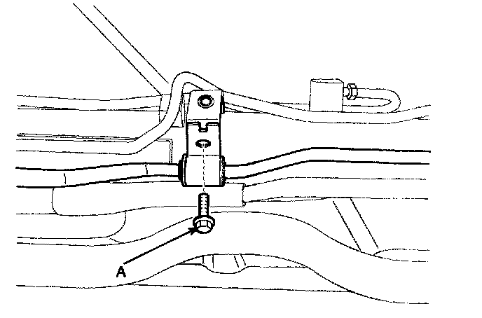 14. Remove the tube bracket bolt (A).