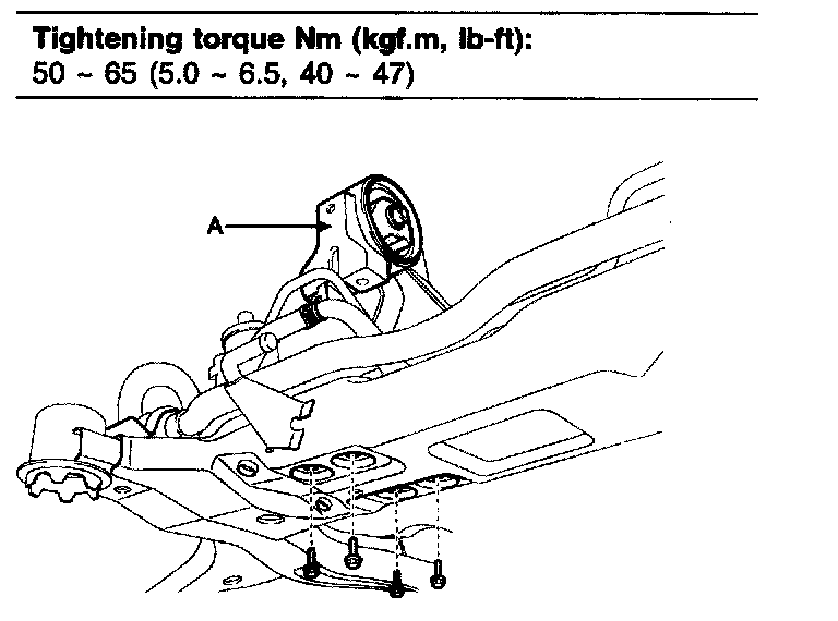 11. Remove the sub-frame by loosening the bolts and nuts (A).