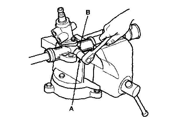 CAUTION: Remove the tie rod (B) from the rack (A), taking care not to twist the rack.