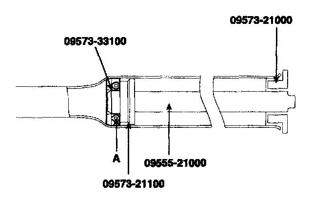 21. Using the special tool (09573-33100, 09555-21000),remove the oil seal (A) from the rack housing.