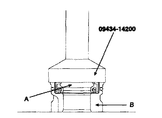 9. Using special Tool (09432-21600), install the oil seal and the ball bearing in the valve body (A).