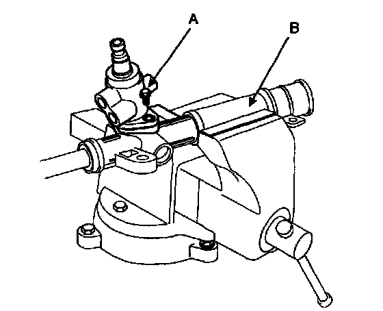 13. Disconnect the pressure tube (A) and return (B) from the valve body housing.