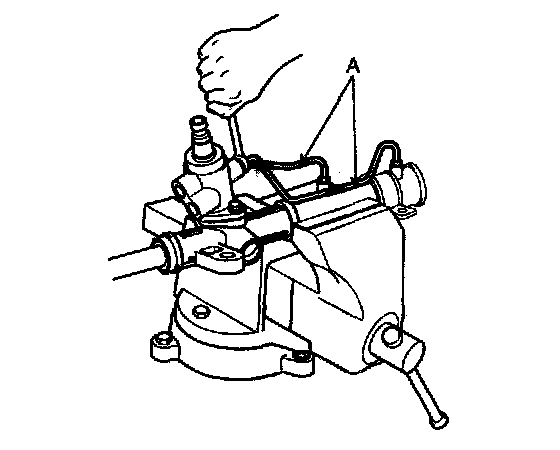 10. After applying the specified fluid and grease to the pinion valve assembly (A), install it in the rack housing assembly.