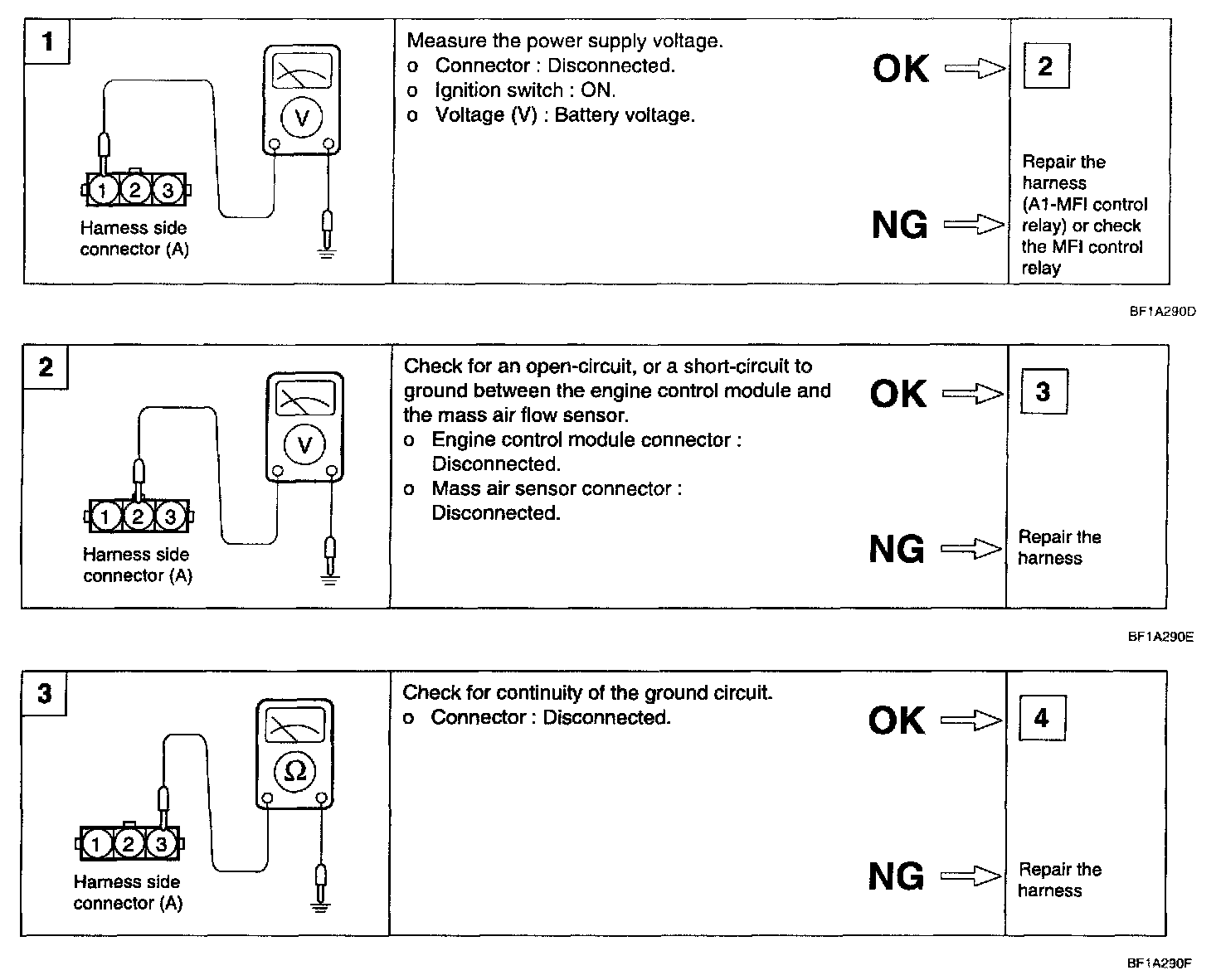 1. If the engine stalls occasionally, start the engine and shake the MAF sensor harness. If the engine stalls, check for poor contact at the MAF sensor connector.