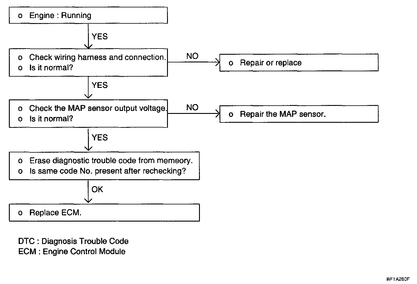 2. When the manifold pressure is 0.2 V or lower for 4 second.