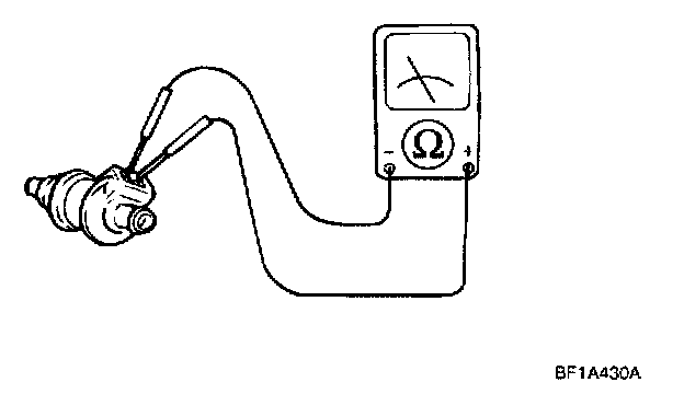 Measure the resistance of the injectors between the terminals using an ohmmeter.
