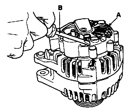 1. Remove the generator cover (A) using a screw driver (B).