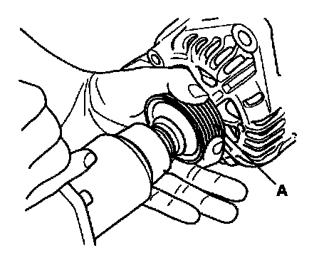 5. Remove the nut, and the pulley (A).