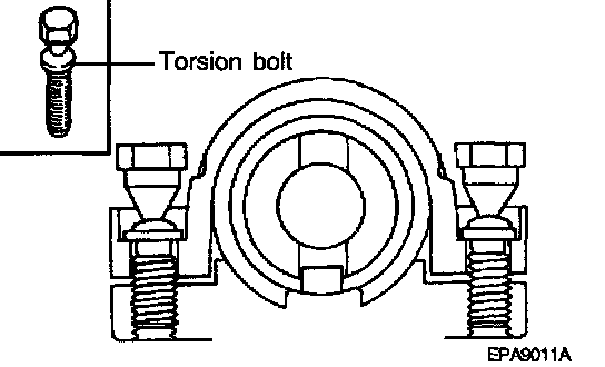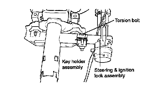 2. If it is necessary to remove the steering and ignition lock assembly, use a hacksaw to cut the torsion bolt at the key holder assembly side.