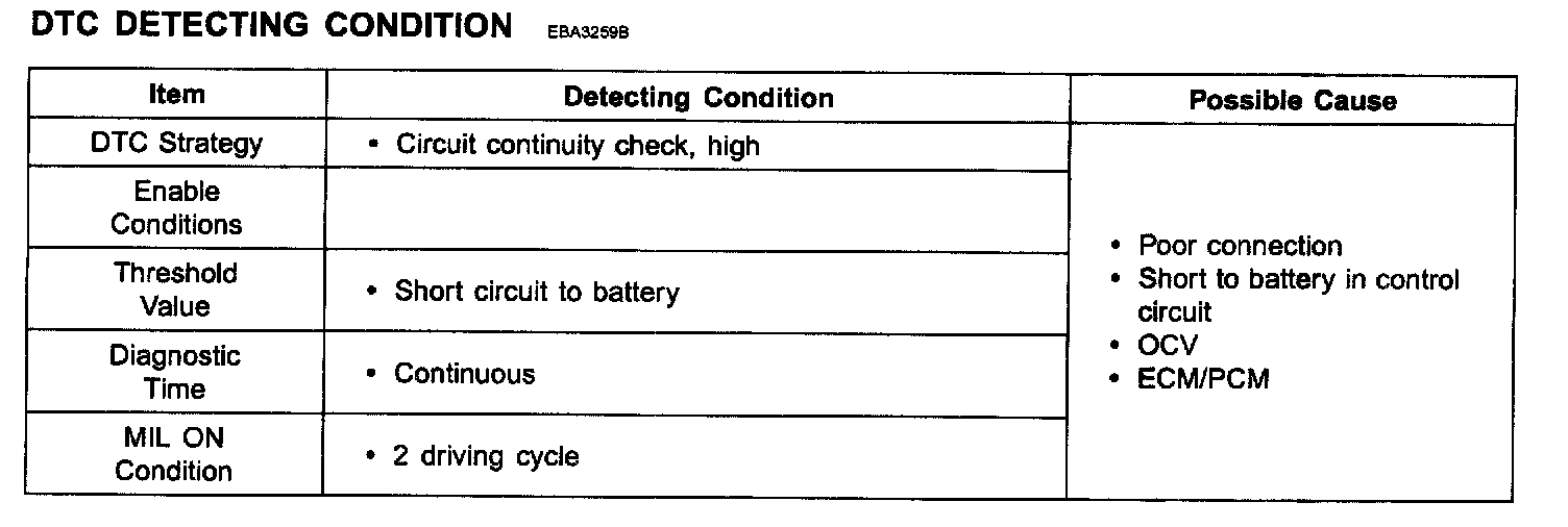 When ECM/PCM detects short to power in OCV control circuit, ECM/PCM sets DTC P0077.
