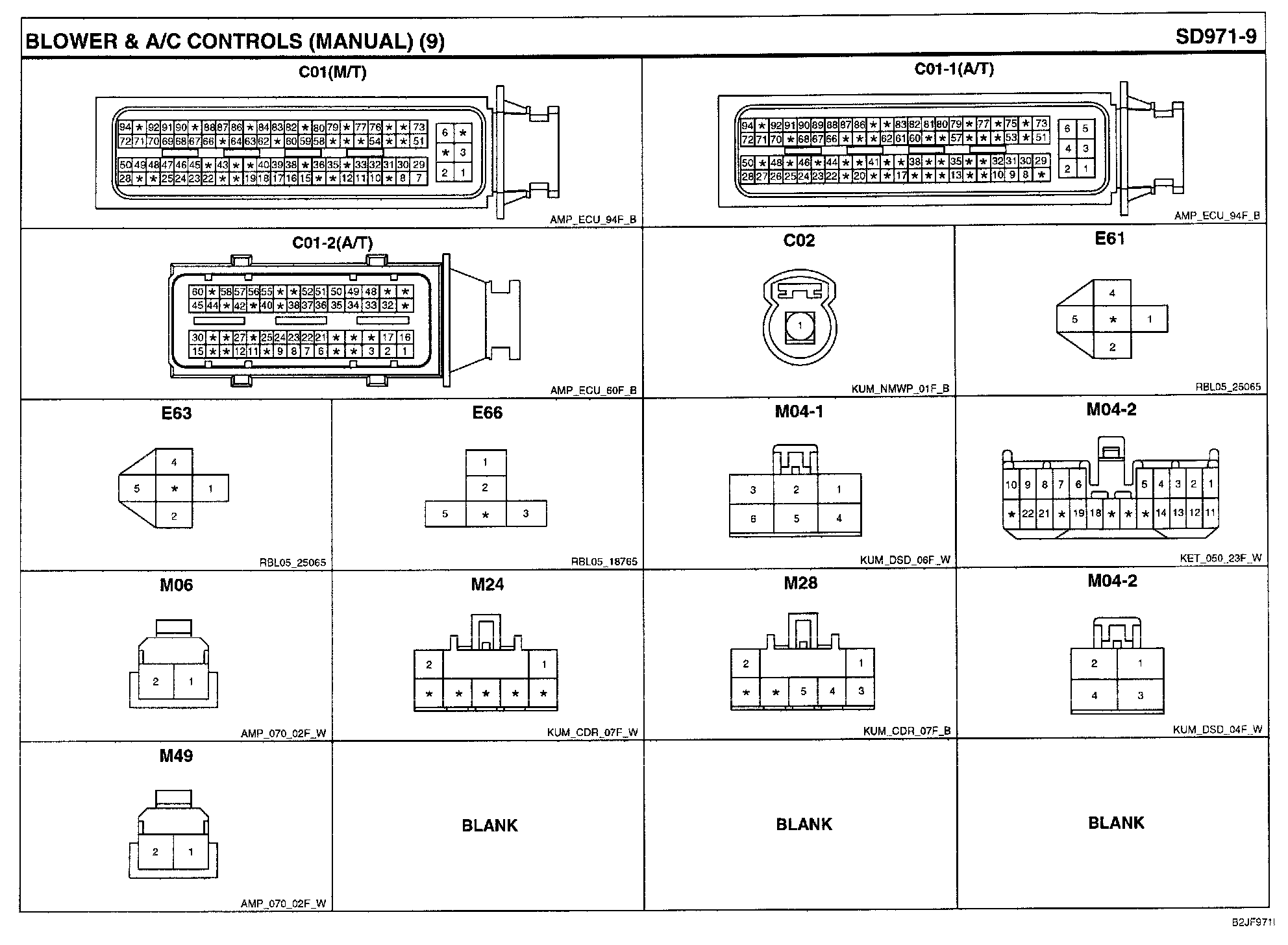 Blower & A/C Controls (Manual) Connector Pin Outs: