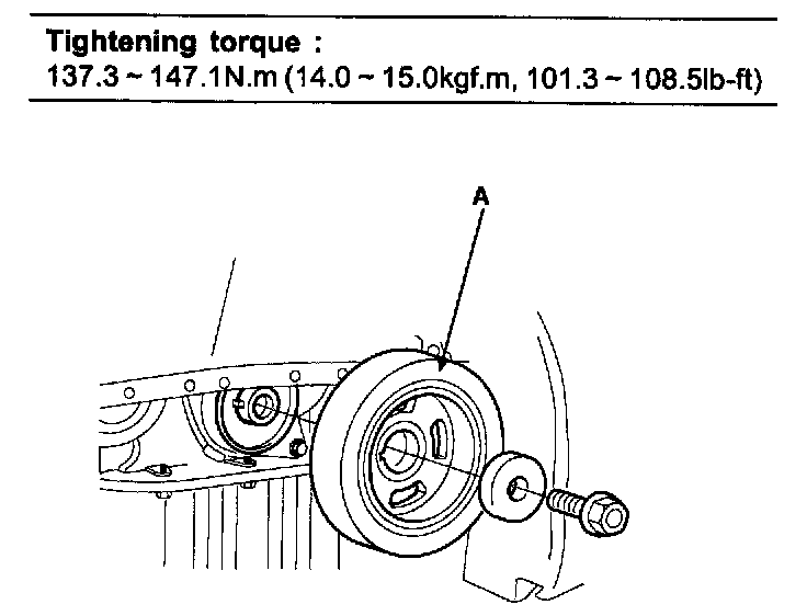 Tightening torque: 88.3 - 107.9 Nm (9 - 11 kgf.m, 65.1 - 79.6 ft. lbs.)