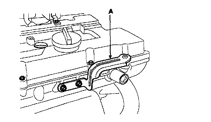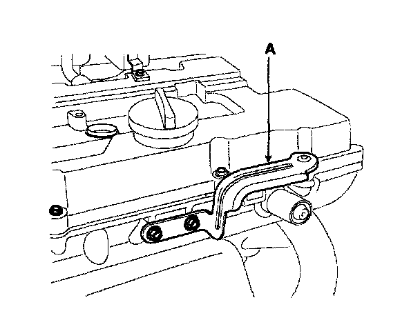 4) Remove the engine cover bracket (A).