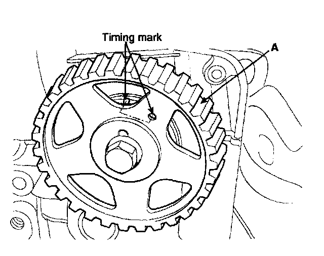 2) After checking the alignment between each sprocket and each timing belt tooth, tighten the mounting bolt (A) and (B) one by one.