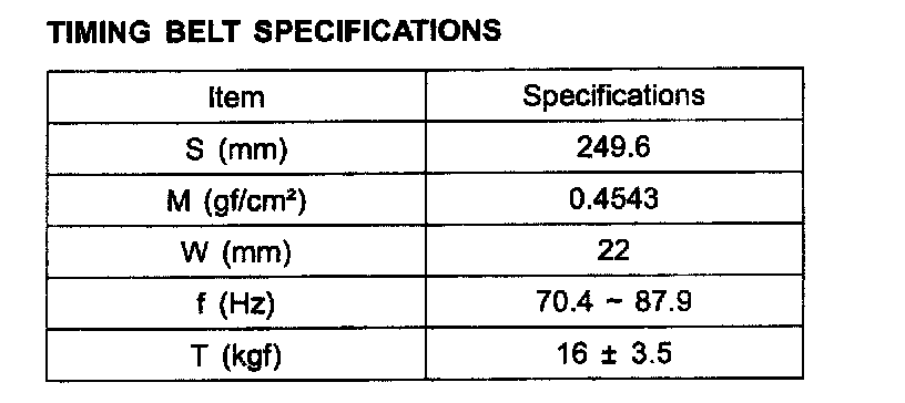 TIMING BELT SPECIFICATIONS: