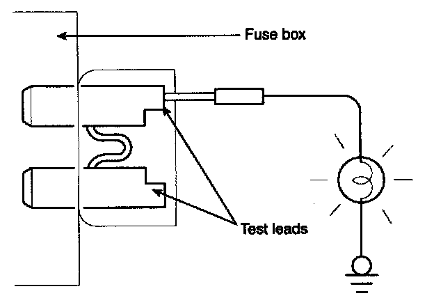 A blade type fuse test taps provided to allow checking the fuse itself without removing if from the fuse box. The fuse is good if the test lamp lights up when one lead is connected to the test taps (one at a time) and the other lead is grounded.