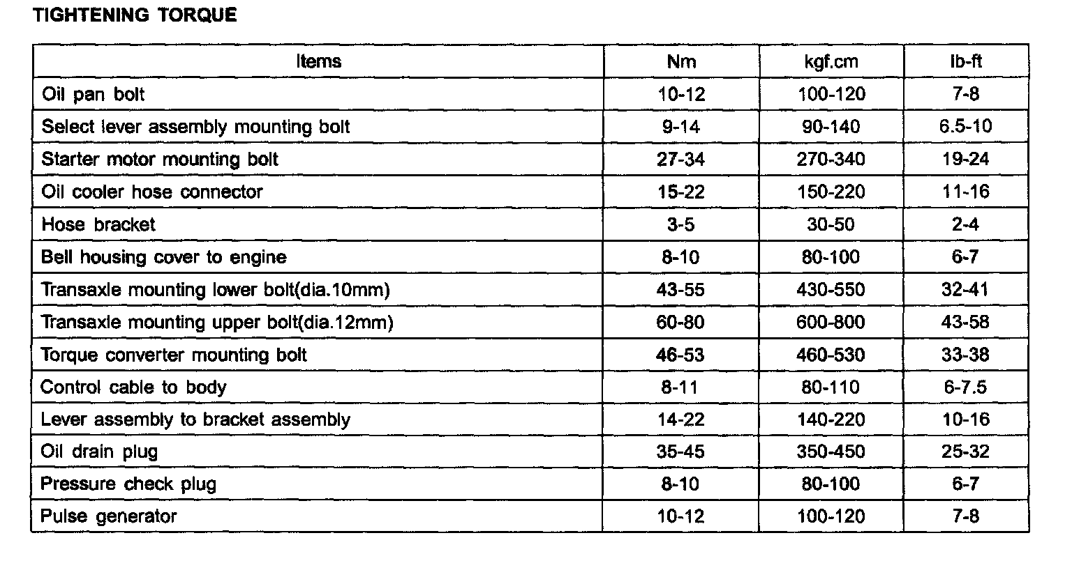 Tightening Torque