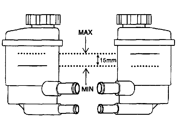 7. Check that there is a little change in the fluid level when the steering wheel is turned left and right.