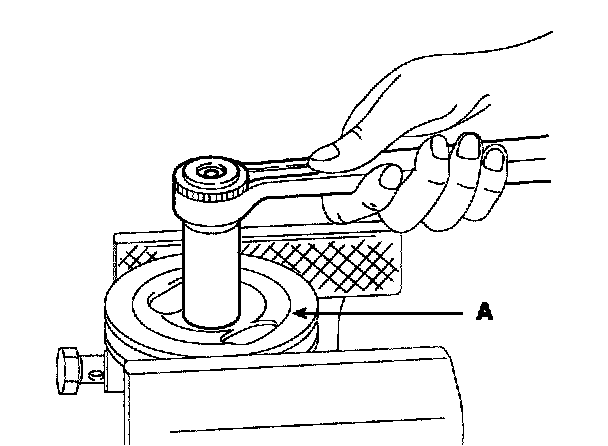 4. Loosen the tension adjusting bolt (A).