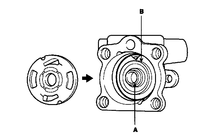 12. Remove the oil seal (A) from the oil pump body (B).