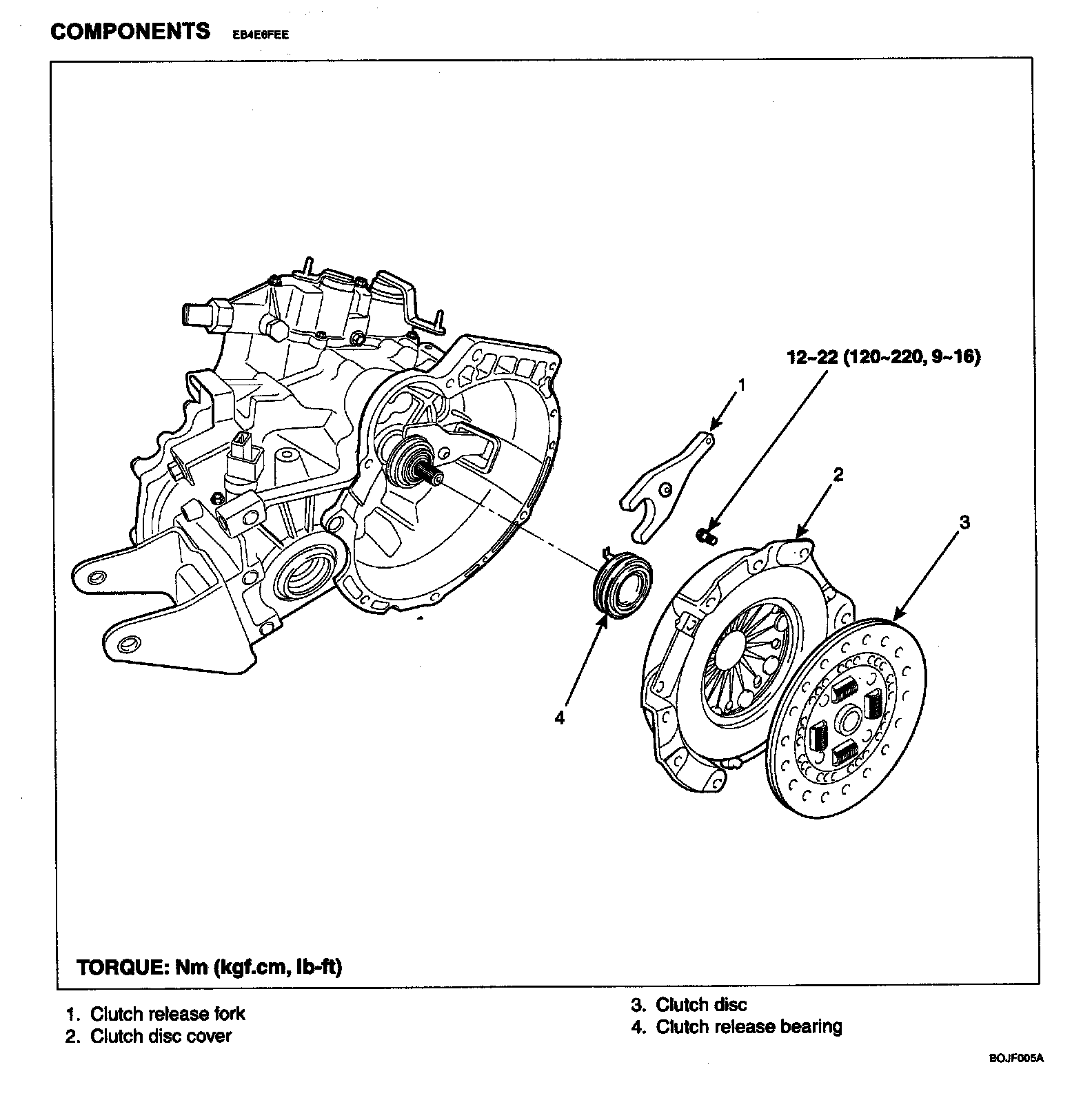 Clutch cover bolt: 15 - 22 Nm (150 - 220 kgf-cm, 11 - 16 ft. lbs.)
