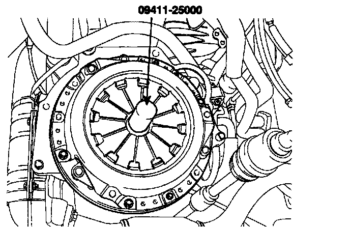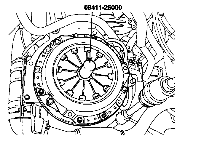 2. Install the clutch disc assembly to the flywheel using the special tool (09411-25000).