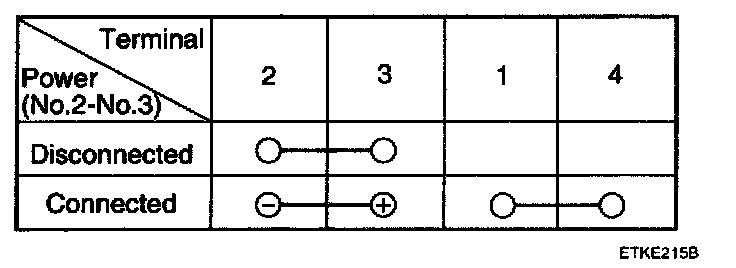 5. There should be no continuity between the No. 1 and No. 4 terminals when power is disconnected.
