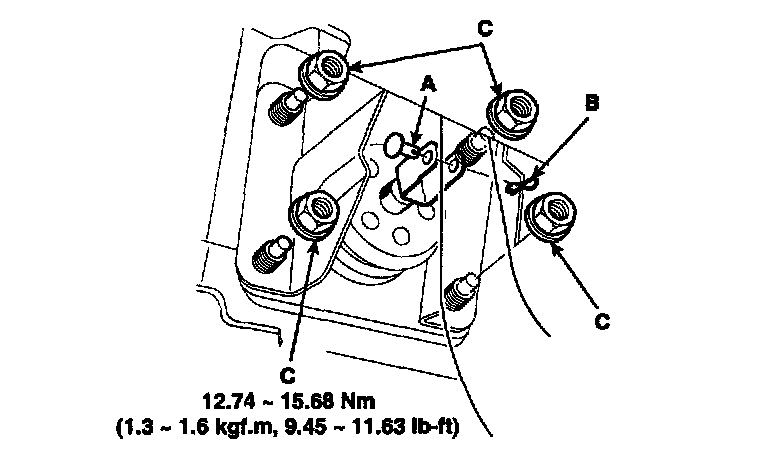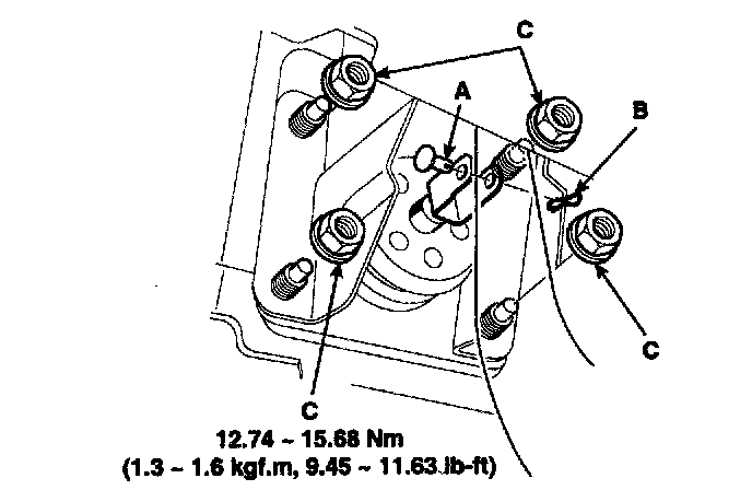 4. Remove the four booster mounting nuts (C).