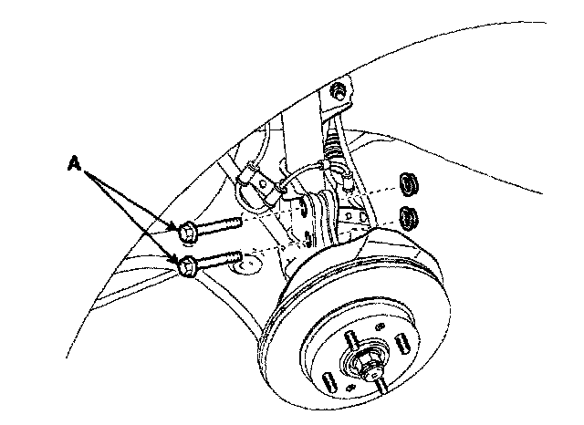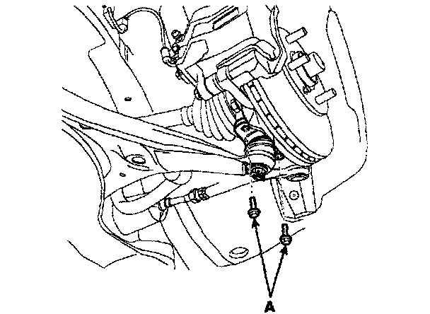 7. Disconnect the strut assembly mounting bolts (A) from the knuckle.