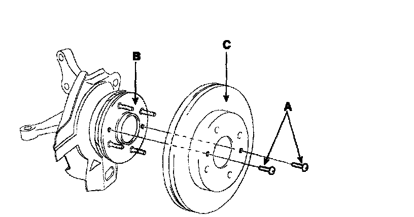 1. After removing the fixed screws (A) mounting the brake disc (C), remove the brake disc (C) from the hub (B).