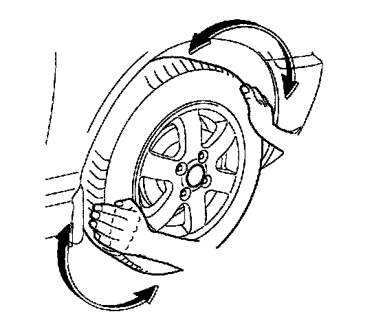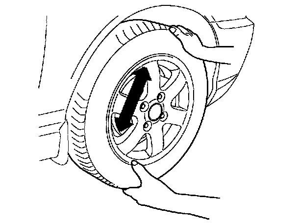 2. Grip each front tire at the top and bottom and move the wheel inward and outward while lifting the weight of the tire off the front wheel bearings.