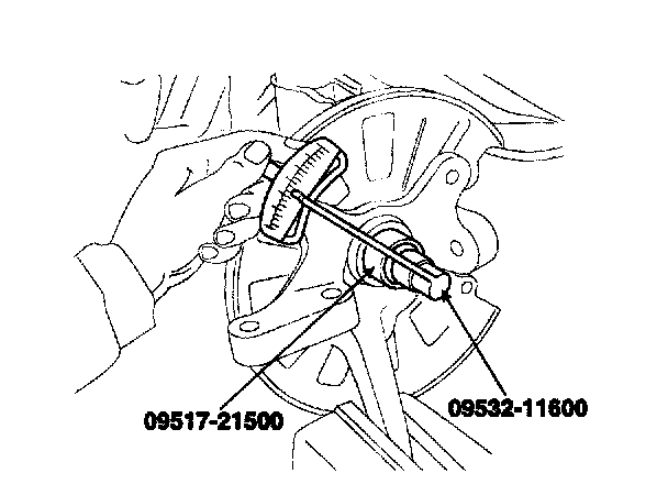 5. Tighten the hub and the knuckle to the specified torque using the Special Tool (09517-21500).