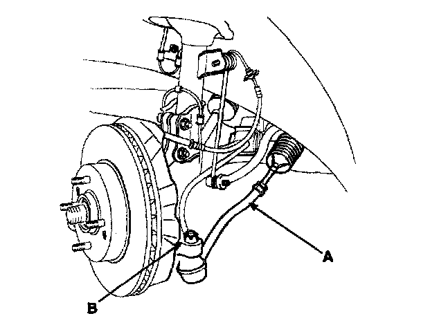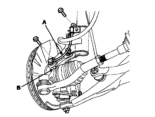 4. Remove the wheel speed sensor (A) from the knuckle (B).