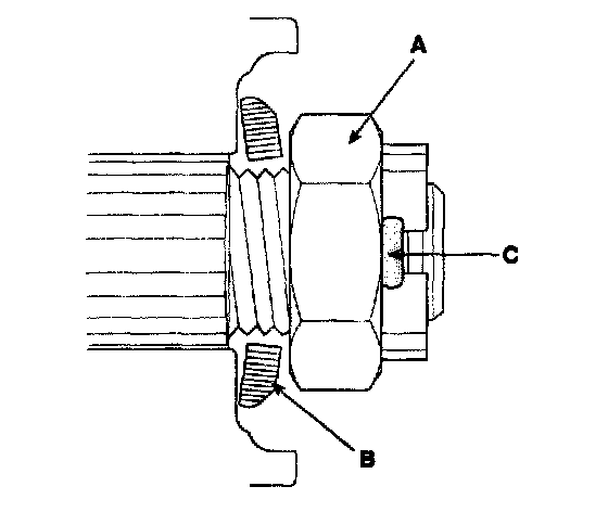 3. If the tire and wheel (hub) is loose on the spindle, does not rotate freely, or has a rough feeling when spun, carry out one of the following.