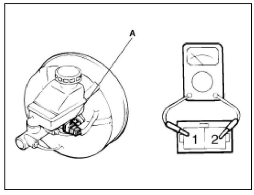 BRAKE FLUID LEVEL WARNING SWITCH1. Remove the connector (A) from the switch located at the brake fluid reservoir.