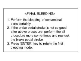 BLEEDING OF BRAKE SYSTEMThis procedure should be followed to ensure adequate bleeding of air and filling of the ABS unit, brake lines and master cylinder with brake fluid.