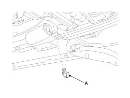 4. Lower the vehicle and remove the connector (A) (24mm).