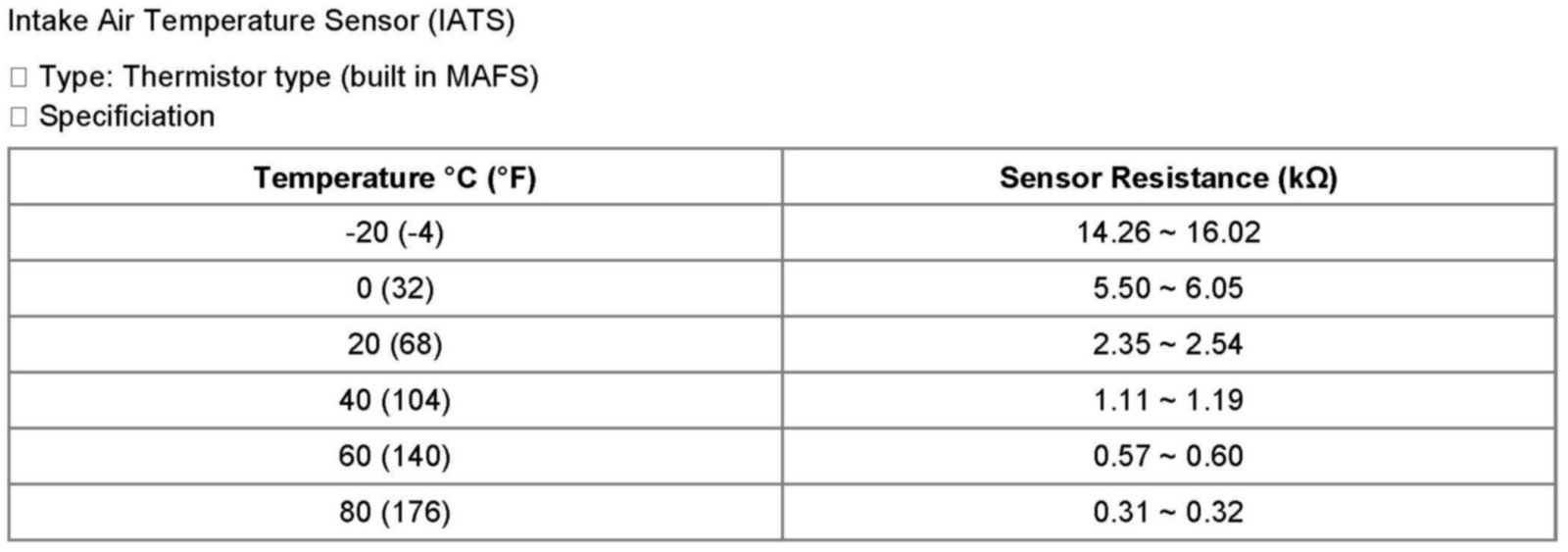 Air Temperature Sensor ( Ambient / Intake ): Specifications