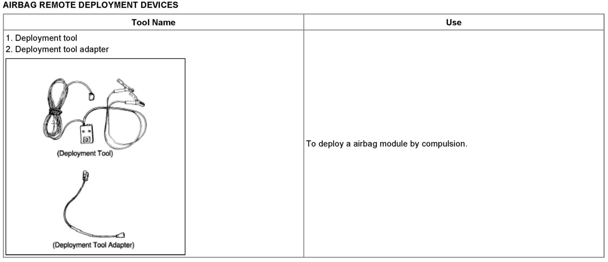 1. Before deploying the airbag in this manner, first check to be sure that there is no one in or near the vehicle. Wear safety glasses.
